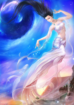 ocean in dress, grass in hair, the most orignal depiction of nature as i've ever seen, very beautiful