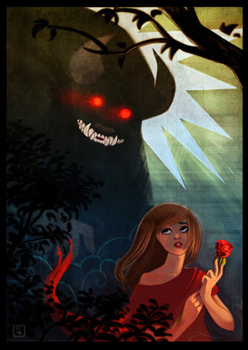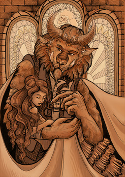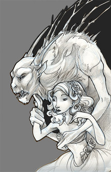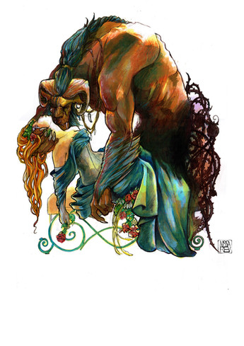 I love the style, the use of solid colour is very effective. The shape of Beauty's body is gorgeous - slender but womanly. I adore you demonic look of your Beast, and how large his hands are compared to her.