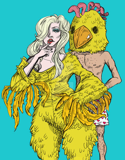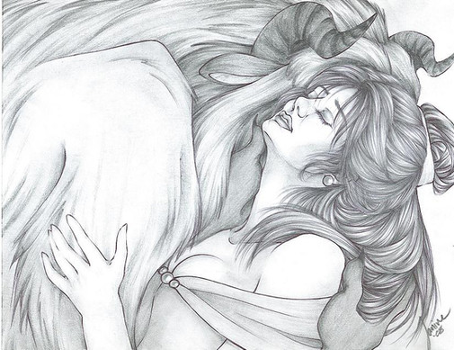 Great!! I love the lineart and style. The simple blocked in colors in addition to the details in her hair and his horns...
