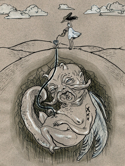 I love how ugly the beast is, and the simple black-and-white coloring. It gives a lot of room to focus on the expressions.