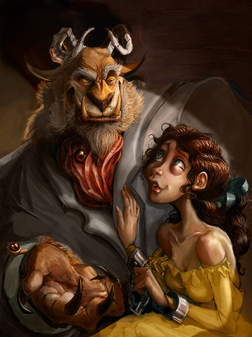 Oooh, I like your take on this! Her attitude seems much colder than in the disney version, which I find more realistic. The beast's "ugliness" shines through better as well, along with an almost pitiable desperateness in his expression. Very well done