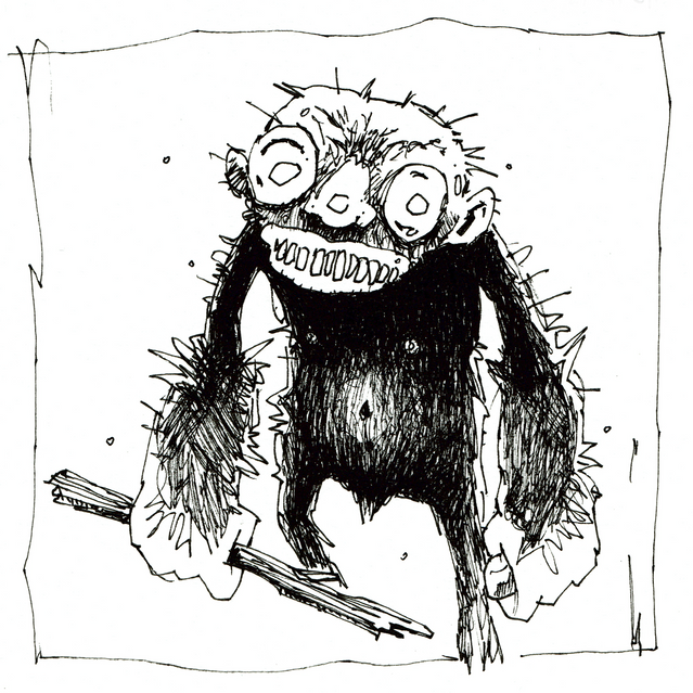The face/hands of the monster/the trees are charcoal smeared around with some water, and the darker blacks are india ink.