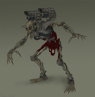 although i know it a cleche, but i think some vestigal limbs might be nice. ya know giving him a more deformed look or bug like look. nothing specific just ya know a couple of bones. hinting at arms/wings.