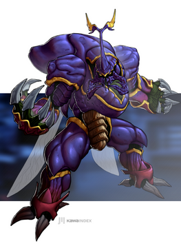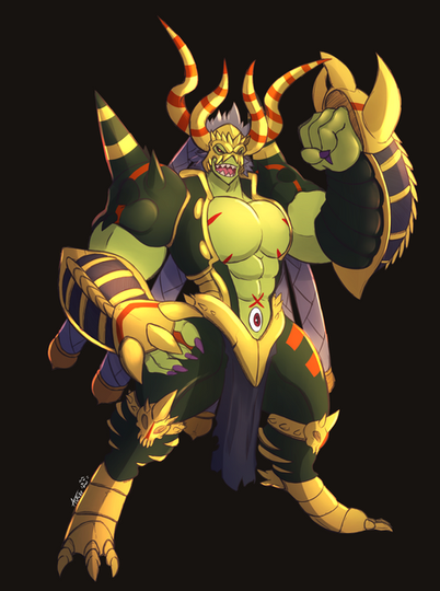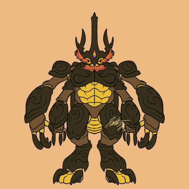 I like this design because it works. The colours compliment each other, the pose gives Khepri an intimidating look and the spikes on his body feel natural (which with spikes is hard to do correctly).