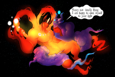 Traveling through time and space Ophiuchus bring chaos into the universe. He sends worlds into madness with his glare.some have thought he may be the serpent that tempt eve with the apple, others believe that he is the Great Chaos that helped create the universe, that his blood help from worlds and the beings who live on them.