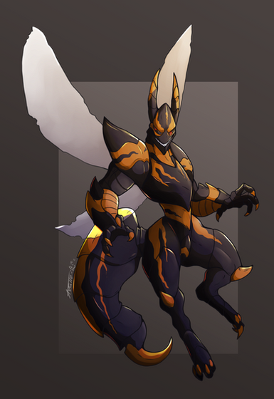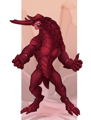 He looks like a blend of an arthropod and a reptile. I really like the chitinous plates all over the body. The claws are awesome too. Amazing work Kitty.