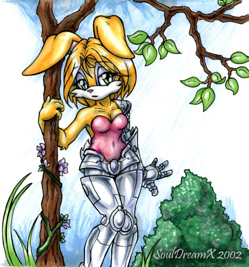 She use to be a rabbit but now she is a cyber.