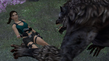 Midground is the bushes, the skull, and ruined pillar