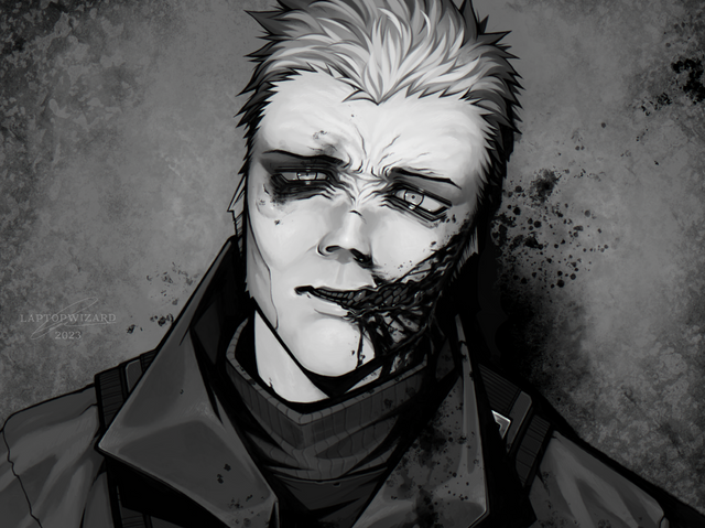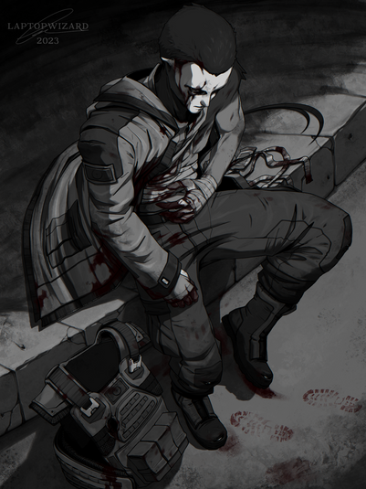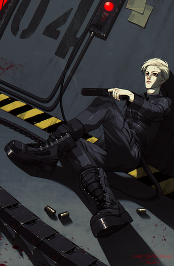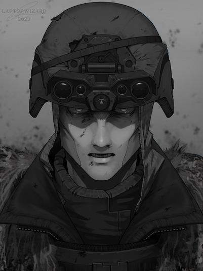 DESCRIPTION UPDATE:Another illustration of Lev. In his previous unit he was a doc but when he was transferred he removed his patches and didn’t disclose his specialty to everyone. (Some knew but he didn’t want it to be obvious) It’s his job to preform medical treatment but recently the sight of blood and gore causes him feelings of aggression and anxiety.