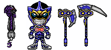 Originally from the planet Mana, the Mercenary Knight Golliat (Youhei Kishi Goriatto 傭兵騎士ゴリアット) sold his people to Zalloss for one simple thing: a mechanical body to host his mind. In his treachery, he betrayed and killed Shido 's father.His weapon of choice is a high-tech warhammer called Big Graviton (Biggu Gurabiton ビッググラビトン).