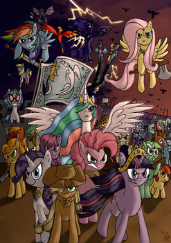 drawing 100 ponies is no easy feat. Nice job on getting through the whole process. Why did you obscure Celestia's face and no one elses? Got a thing against her? XD