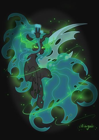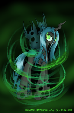 OK, you have carpet bombed me with this drawing, it's possibly the best Chrysalis fanart ever! The eyes, the wings, the horn and of course mane & tail with that sharpy, blady touch. I can see that her crown shall not be touched by anypony, ever.