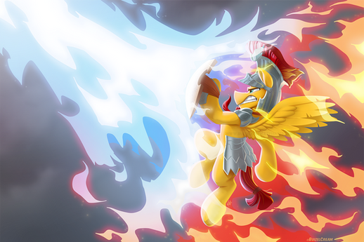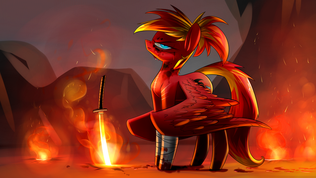 hey there So just for the record when i decided to commission underp it was entirely because of the "Vigors" pictures I saw of Rainbow Dash and Applejack neither of whom is objectified in any way in those pieces. When I wrote to underp I cited those pictures as reference to what I was hoping for, something dark and dynamic in that style. Underp came up with a concept sketch that was kind of static and not really what I was going for so I tried again asking for an actiony flying pose or something and he gave me this which is fine. So again for the record, I did not commission underpable because of his plot pics, it's not what I was looking for and ended up being incidental. I'm very pleased with the final product and just because you can see Fire Strike from that angle doesn't mean it needs to be pointed out imo. I'm not the one who submitted it to any flank-centric groups, that was the artist's choice. And honestly just because an artist draws butts a lot doesn't mean that every piece they do is aiming to make that the focus.