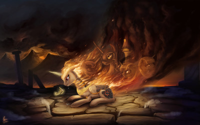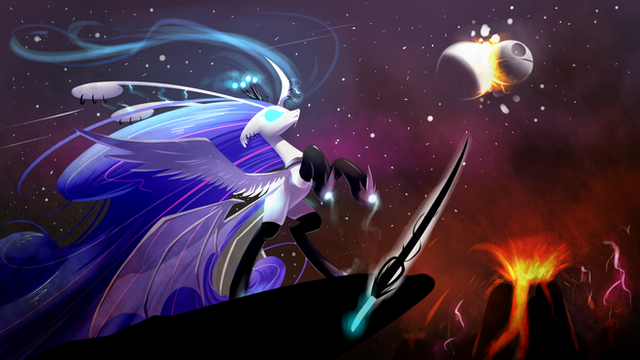 The impact is my favorite part. It's very empowering to look at, and it truly makes Luna appear to be the strongest mare the viewer has ever seen. The distant Earth, severe moon-rock cracks, and the wild hair come together to create possibly the most powerful piece I've ever seen.