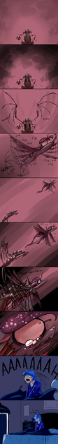 This is a cartoon; a joke told with visuals. As a cartoon, it's a winner. As artwork, it's not the best you've ever done, but it conveys the joke successfully. The art appeal of the first panel is very weak, Tempest's lower body looks distorted and elongated, as if it was being pulled into a sci-fi dimensional portal and for her head, her ears are pinned back (which makes sense) but they look odd which I may be due to relative size to the rest of her head, I'm not 100% sure why it bothers me. The second panel is spot on as Tempest spirals off into the tempest. (...yes, I wrote that.)
