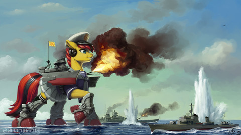 Oh hello.Β I thought this was about when Steal Rain fires The SS. Celestia's massive cannons.Β But nope.Β It is a pony version of that thing I keep seeing about those girls with the famous WWII ships names.Β What even is that?
