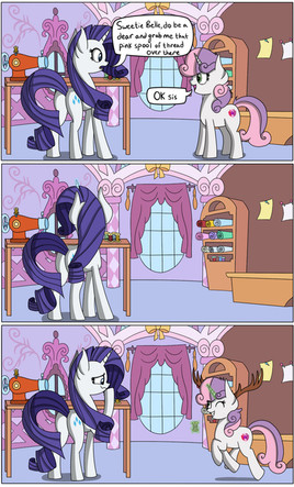 Panel 1: Aww, that's a cute Sweetie Belle.