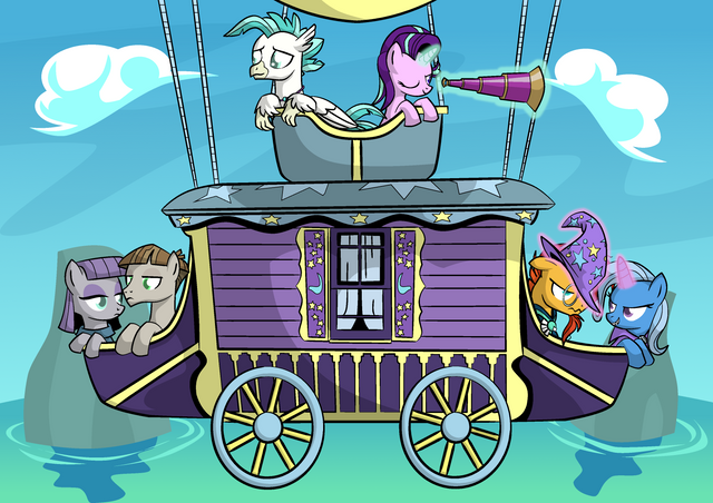 Trixie's carriage is magnificent. I mean,Β Discord's might be too, but it's mostly hidden behind Trixie's glorious ride.