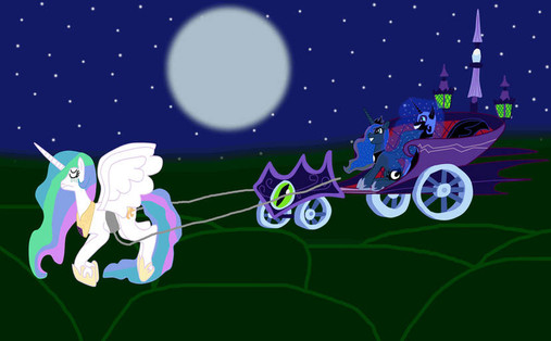 Poor Twilight and Cadence. With wings they managed to pull Discord's chariot to the end of Equestria, but without allowing them to use wings and magic they can hardly pull it.