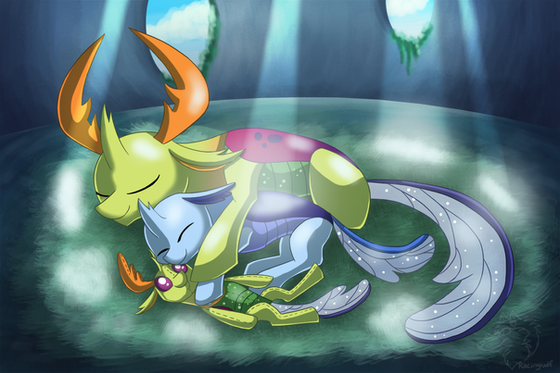 Twilight, you sleep in the weirdest places. At least he doesn't seem intent on eating her. Β Awesome work as usual~