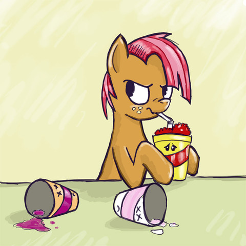 Soon afterward, an intervention for Applejack was held. Applejack confessed her addiction to sugar cubes and promised to lay off them for a while. Her friends helped, of course. Especially Pinkie pie, who ate all of her sugar cubes to help Applejack keep her promise. But, Pinkie became addicted to sugar cubes herself. She went on a sugar spree all around Ponyville eating everypony's sugar cubes. Eventually, a fight between Pinkie and Applejack erupted over the sugar cubes. No one tried to stop them as they were all tired of the mess by then.