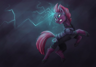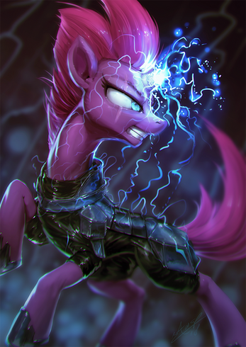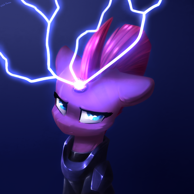 This is probably my favorite Tempest fanart I've seen so far. The use of lighting is phenomenal and makes this piece stand out from the rest. I also love how her expression is very calm and subdued, but the bolts of energy from her horn are intense and energetic. It's a nice juxtaposition that conveys her character very well.