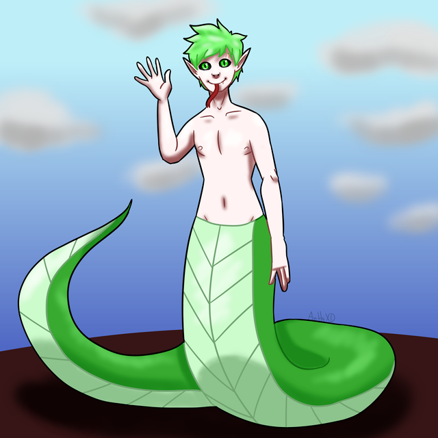 From the Enchantment AU .I love the little details in his design, like his little snake tongue, he's so cute!