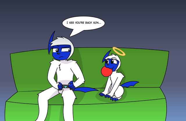 well here a pic i did giegue has to wake his litle brother everymorning because ninten wont wake up and Gi always has to drag him out of his bedyeah the Giegue of my Au always use clothes <.<Β