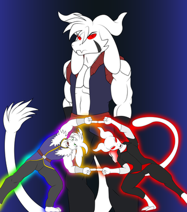 Well what i can Say? Yes i a fan of dragón ball You Saw the reference in My comic over and over so here one art bases on the attack of Gogeta ssj4 from the Game of dragón ball z fighters whoever get this attack not Even a reset Will save itAnd this fusión is called dreeguer You know combining dreemurr and giegue