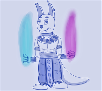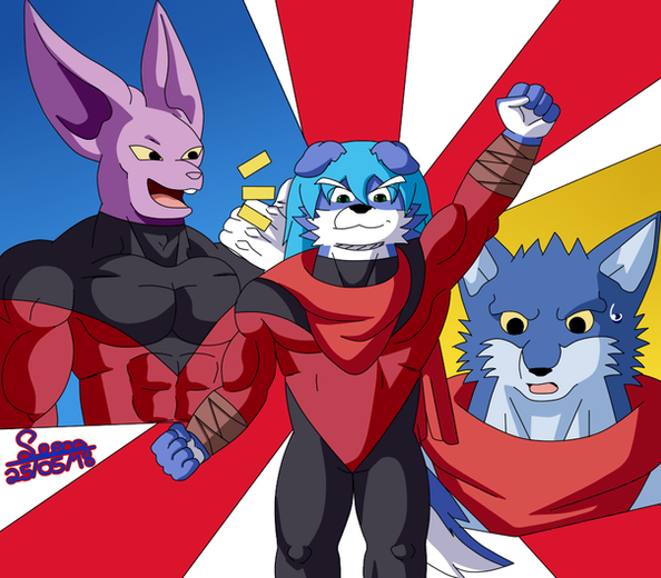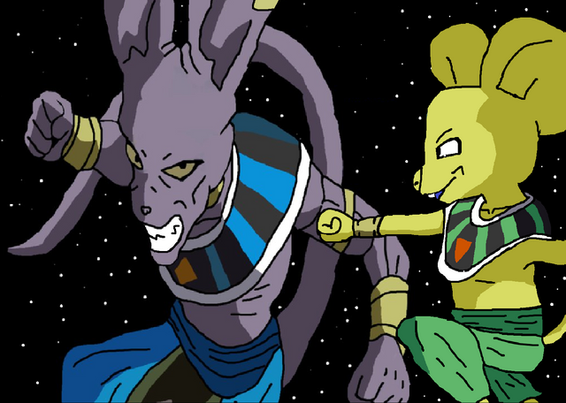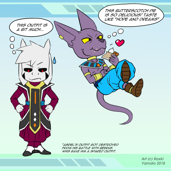 I get Β Giegue as Beerus; since they're both EXTREMELY Powerful Cat-like Aliens; but what do Saitama and UP! Asriel have in common?!?!?!?!?