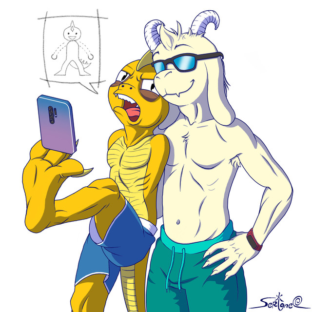 well remenber in the comic asriel went to a costume party ? and he wore saitama outfit? well giegue went to that party to and guess what diguise he choose? l3 sorry i cant resit to do it XD! Azzie took a selfie :3 Β and i back i finally back after a long time i recovered my internetΒRelated content