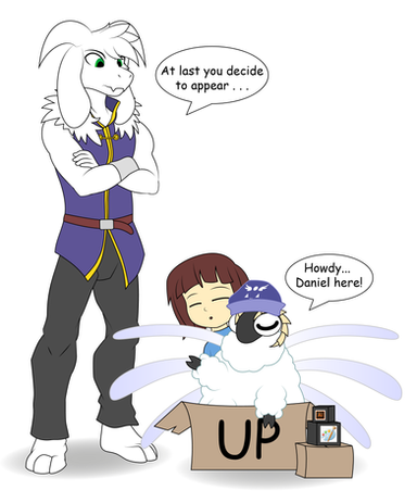 WHAAAAA?! ASRIEL DREEMUR! Β‘Stalkear a la chica qe te gusta no esta bien! Β‘Vete, vete! -Β Af-Asriel empuja a Parallel-Asriel con cara de decepcion-