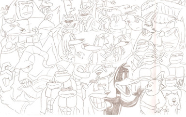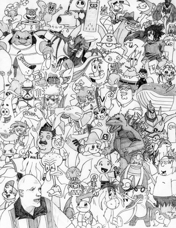 been trying to get the site for my webcomic of the ground and I've been having some frustrating technical problems, so I decided to take a break and draw a bunch of my favorite cartoon characters to help me vent. including inking took me around 3 hours and I'm pretty happy w/ it. I'll try to color it digitally when i get some free time (which won't be for at least a couple months).Related content