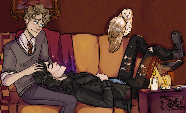 #autumn #cats #fall #fanart #harrypotter #hp #hpfanart #pumpkins #romione #hermionegranger #hogwarts #ronweasley