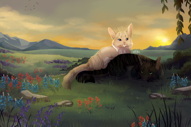#cats #field #flowers #sunset #commission #warriorcats #warriorcatsoc