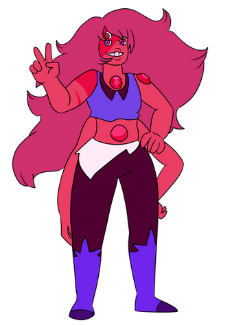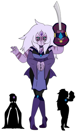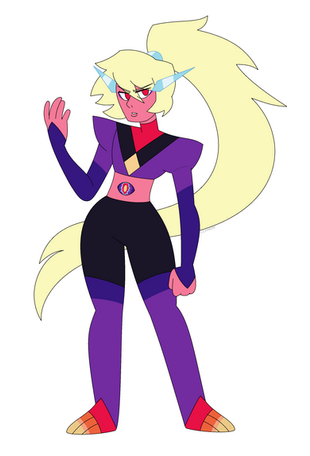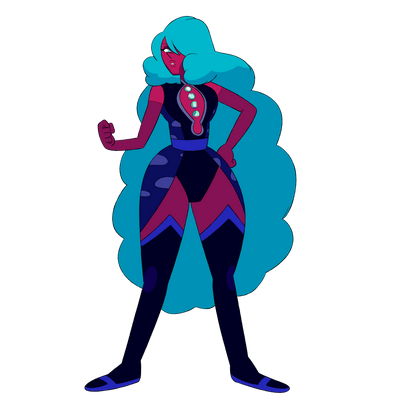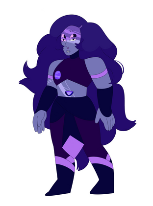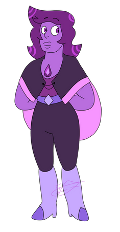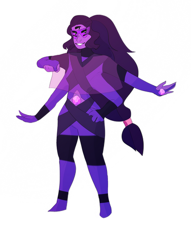 Introducing the new and improved Hackmanite. The fusion of Amethyst and Hyacinth! formerly known as dragon breath Opal!I decided to change her Gem mostly because I really didn't like the idea of her making and Opal and her not being a pearl and an Amethyst, ya feel me? Also her body type wasn't what I wanted it was more Hyacinth than Ame--