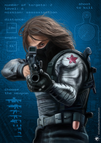 10.2014, digital painting, Bucky Barnes / Winter Soldier"So, you wanna play russian roulette with the russian assassin? Genius."