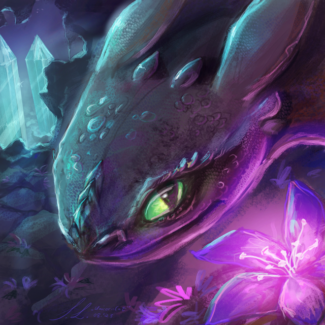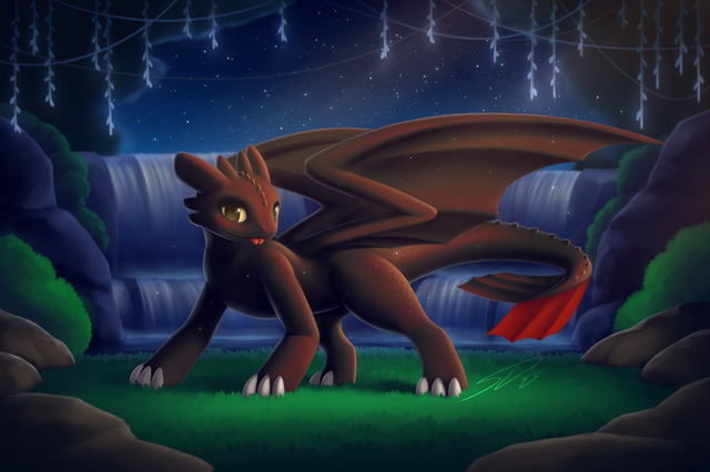 It is one of the first times I drawed with my new Computer, Wacom Tablet and Krita. I drawed Toothless first and then tried to imagine a landscape - what was hard... ^^ I hope you like it!