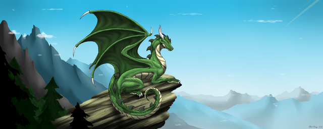 Wow, das ist echt klasse. Der Drache selbst ist wirklich wunderbar geworden und auch das Verblassen der Umgebung im Hintergrund. Die Bäume hätten allerdings tatsächlich etwas kleiner werden können, je weiter nach oben es geht Aber das ist nur ein kleiner Kritikpunkt. Ansonsten hast du in dem Bild den Fokus eindeutig auf den Drachen gelegt, was auch Sinn macht, da er das Bild wie ein König beherrscht. Etwas Raum muss er dann ja haben. Alles in allem ein sehr shcönes Bild, das den Eindruck von Erhabenheit und Größe vermittelt.