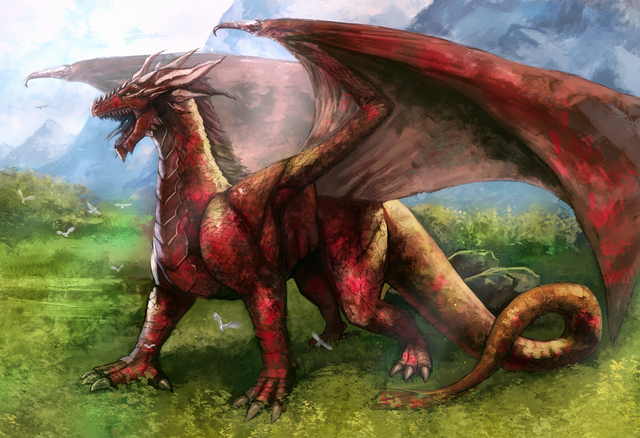 -I appreciate the use of size comparison by having the mountains in the background and the birds flying around the dragon.