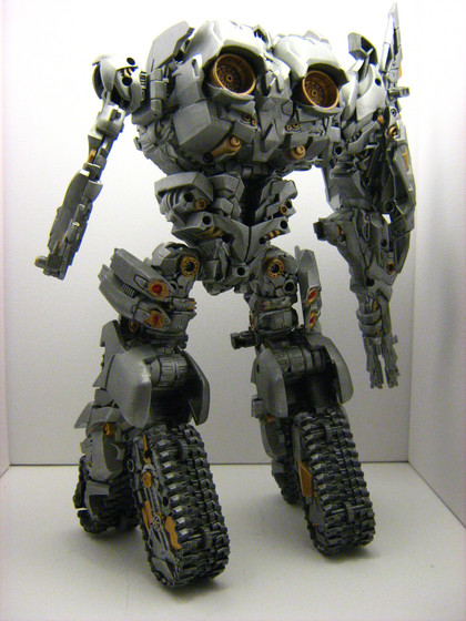 I added the chains and green parts to look more like he does in the DOTM game trailer, although that Megatron in the trailer looks very little like this figure. In the game, he has dark- almost bluish looking parts too, and his body has much different details than the toy, like engine parts and hoses.The green parts were done in Photoshop. I didn't actually paint the figure I have on Ebay right now, heh.