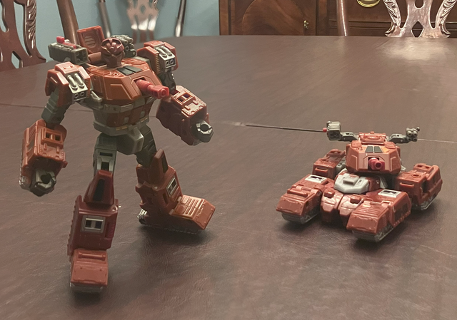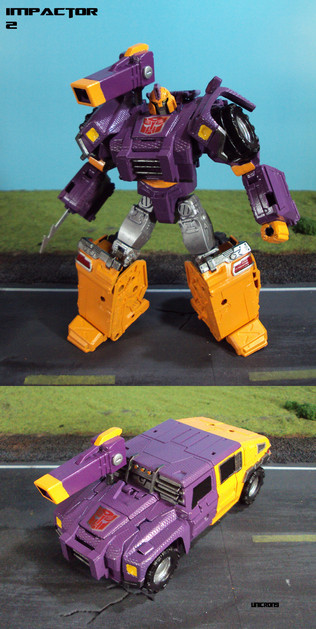 I have seen a lot of Impactor customs done, mostly from the same 2 toys, but rarely have I seen one that has the cybertronian tank mode. That's why when I was asked to turn Beast Machines Voyager Tankor into Impactor, I was happy to take the commission despite the big arms and other design choices on Tankor that would make the Impactor bot mode a big challenge.It was a pretty fun one to do.