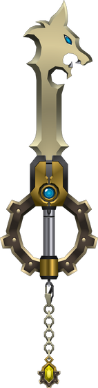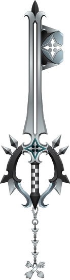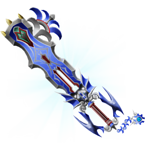 The first of 13 Seeker of Darkness keyblades, starting with Xion's.A bit of backstory behind this. I imagined that if the True Organization 13 indeed revived Xion from their records, she would start off as a blank doll with the copy of the Kingdom Key materialized. As she goes out to other worlds to copy Sora's data on his battles and combat, her appearance would change to look exactly like the KH1 version of him. Eventually, her progress would prompt Xehanort to place a piece of his heart within her and her keyblade would be fused with Xehanort's, thus this keyblade would be born. The way the keyblade is "encased" with parts of Xehanort's keyblade symbolizes his hold on her up until her own heart enters the replica and fights to claim the body as her own. Also, when she wields it and uses a special move, the blue parts turn crimson red.
