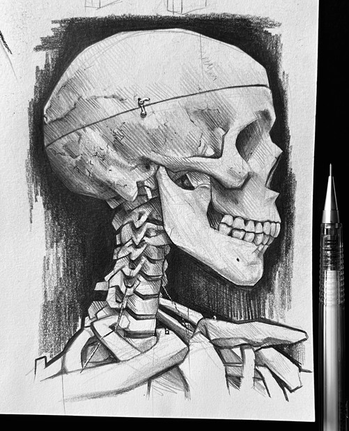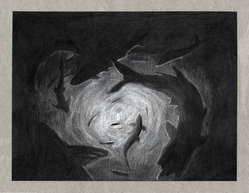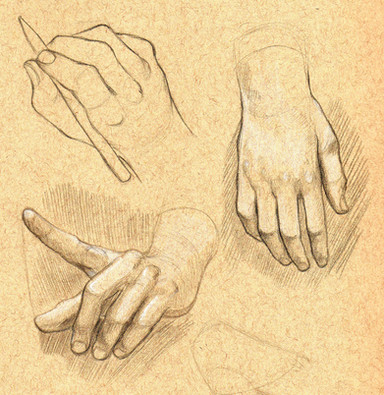 2B pencil and white pencil on toned paper