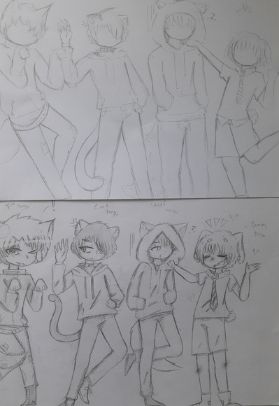 Currently drawing something and I've finished the base of the drawing and moved on currently to drawing the clothes over their bodies.