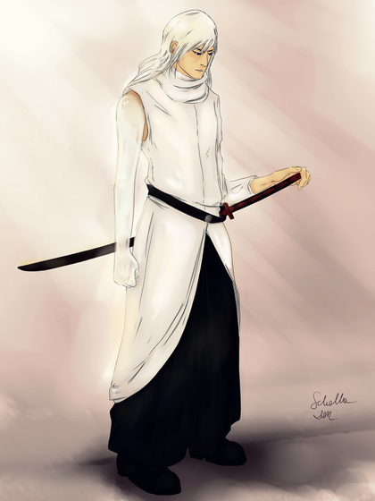#blade #drawing #originalcharacter #sword #theguardians #ren_kuro #armor #armour #blackhair #clothes #digitaldrawing #fightingstance #hazeleyes #rippedclothes #whiteclothes #own_character #battle_pose