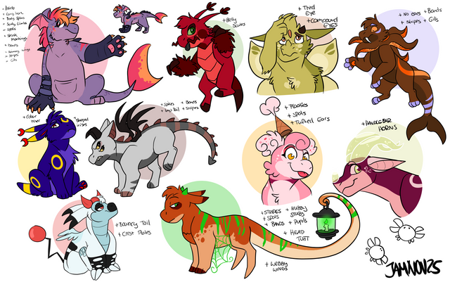 Gastro: The slime he excretes can have many purposes. It can be slimy, so he can escape, or sticky, so he can trap pray. While he leaves a trail of slime behind him, it can seep into the thick swamp ground and lose its color, acting as a fertilizer for the life all around. It is also a way to walk on water for a short amount of time if he doesn't feel like getting wet. Gastro is the wise kind. If any creature dares to look and manages to find him, he can figure a way out of most any troubles. Despite his looks and harsh hunting attitude, he is very kind to any visitors or lost wanderers. He loves to get to know strangers. One of the main reasons he trusts so easily is because he has a lot of confidence in being able to take care of himself if they prove bad. He had many stories to tell if someone is willing to listen, be they folk lore, ones he made up himself, or adventures of his own. He can be vicious if provoked and, while respectful, lacks a sense of regret for anything he might kil.