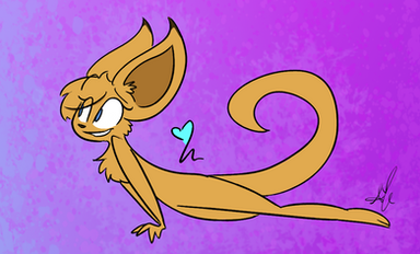 Torrent: Torrent is a very spunky little creature. He lives by the clear water under a very large short-palmtree-swamp plant. He's very talktive and could chat your ear off if you let him. Swimming is his passion, and fish are his friends. His fluffy cheek things act like whiskers for a cat and can fan out up to 12 inches wider. His markings and eyes glow when he is in the water and it is dark, ie swimming in the river at night or diving very deep. His ears act like fins are are very sensitive. He's hurt easily and isn't afraid to cry in front of others.