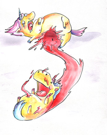maybe you could draw fighting, um... you know, the fishes with legs.