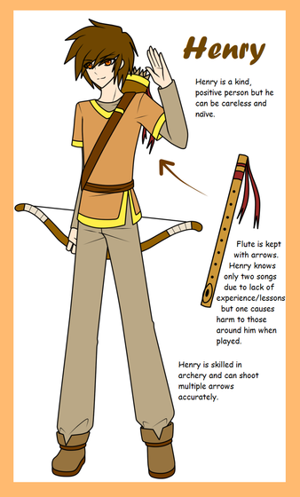 Hinto was born in the castle and spent most of his childhood there training and studying. His father was an elf and his mother human. When Hinto hit his early teenage years, a bit of childish curiosity overwhelmed him and he began sneaking out of the castle to explore the Capital. Loving the sites and things happening, he snuck out more and more, disguising himself so no one would recognize him. Through disguise, he made many friends and he still keeps those friendships strong today.